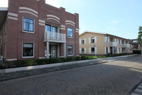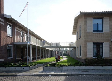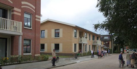 Op een terrein waar een basisschool uit de jaren ’70 stond is een complex ouderenwoningen gebouwd. In samenspraak met omwonenden werd tot een tweelaagse bouw besloten rond een autovrije hof.