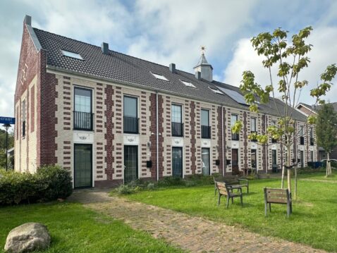 De Koetshuizen langs de oprijlaan. 16 huurwoningen, 13 koopwoningen